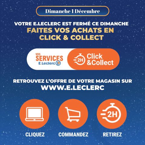 *Offre valable sur présentation de la Carte E.Leclerc, non cumulables avec les autres promotions en cours.Valable dès le lendemain et jusqu'au 31 décembre